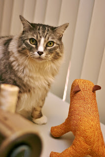 This was the second attempt at a tail. The first one just wouldn't turn inside-out. So I had to cut a new one. I sewed closer to the edge and made it shorter. I also left both ends open and then when I turned it, I kind of folded in the raw edges and stuffed some fluff into it and sewed it shut on the outside. Sewing it on the outside was the best I could do!